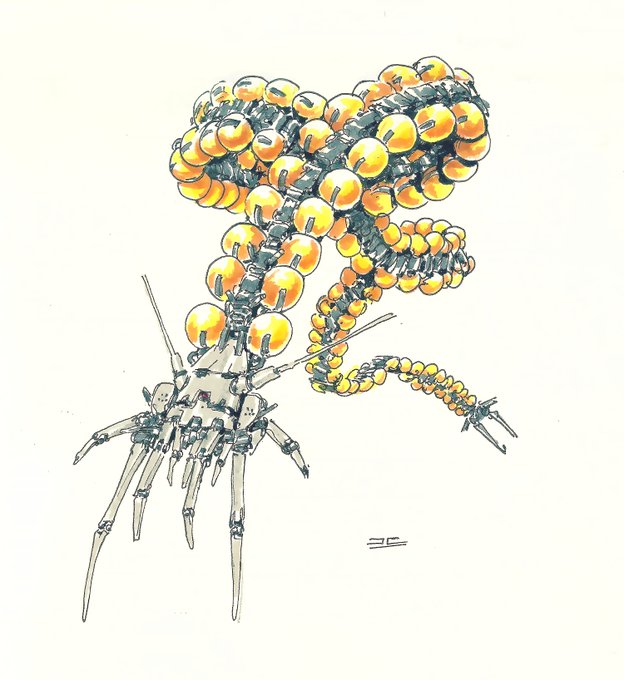 New entry for @BeastSoulArt's #monstober2021. Days 25 and 26's theme: "Claws + Spikes" (a malfunctioned Mobile Autonomous Industrial Driller a.k.a M.A.I.D. unit on a rampage. I've been wanting to make a killer robot since monstober started). #monstober|#inktober2021|#inktober