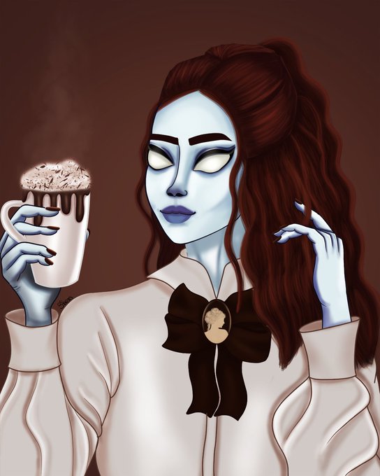 Entry for #monstrouscafétober Oct 28: mulled wine & vampire Hosts:@insanikei @femkedeborah_art @dasha.bune @nymeriaa_art @inesketches @omgleslie #inktober #inktobetprompts #artchallenge #halloween #halloweenart #vampire #mulledwine #artistsoninstagram #prettyvampire #siugaojok