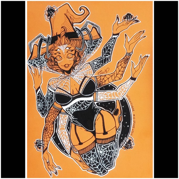 CatiWorks shared 'Day 10. Spider Witch' on Ko-fi. ko-fi.com/i/IS6S2FLVMS #spider #spiderwitch #arachnea #guardwitch #witchtober #inktober #witchtober2022 #inktober2022 #day08 #catiwitchtober #catiswitchtober #monthlychallenge #originalcharacter #traditionalart #originalart