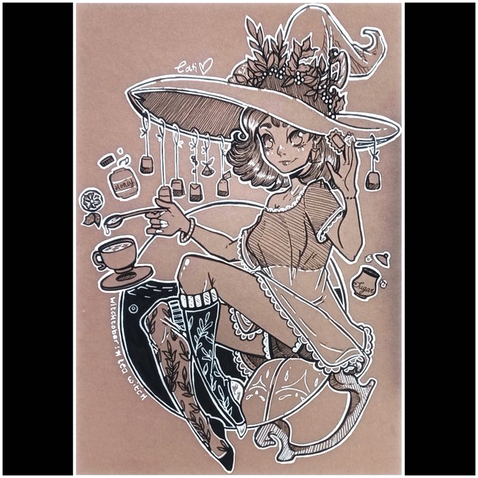 CatiWorks shared 'Day 11. Tea Witch' on Ko-fi. ko-fi.com/i/IZ8Z3FMQ73 #tea #teawitch #teawitchofcomfort #witchtober #inktober #witchtober2022 #inktober2022 #day11 #catiwitchtober #catiswitchtober #monthlychallenge #originalcharacter #traditionalart #originalart #catiworks