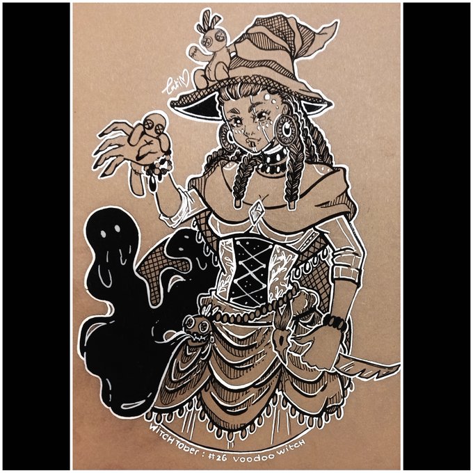 CatiWorks shared 'Day 26. Voodoo Witch ' on Ko-fi. ko-fi.com/i/IW7W2FXU1C #day26 #Voodoo #voodoowitch #witchcraft #inktober #witchtober2022 #inktober2022 #catiwitchtober #catiswitchtober #monthlychallenge #originalcharacter #traditionalart #originalart #catiworks