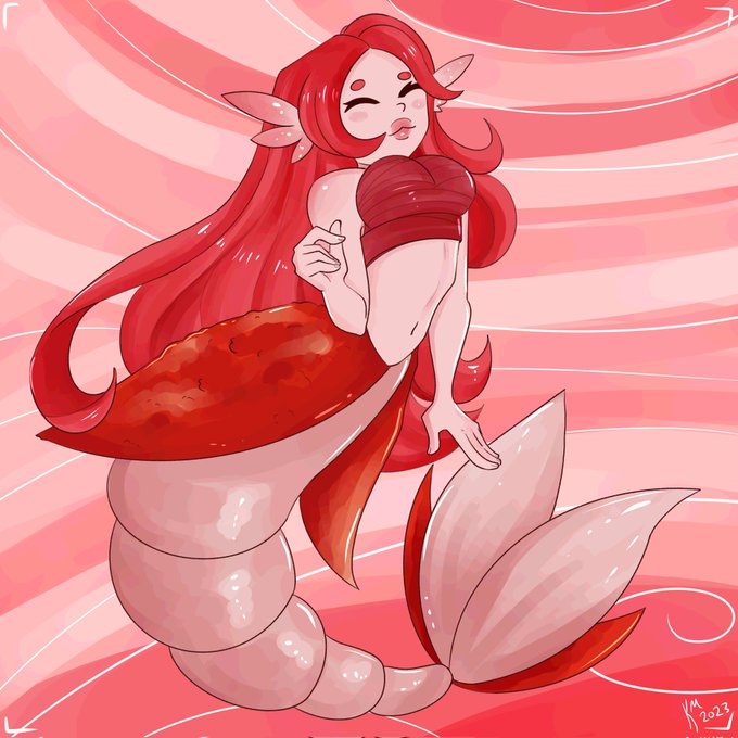 Day 15 of #mermay today is a lychee themed mermaid. Enjoy =) ~ #mermay2023 #mermayday15 #dailyart #digitalart #artistsontwitter #monthlychallenge