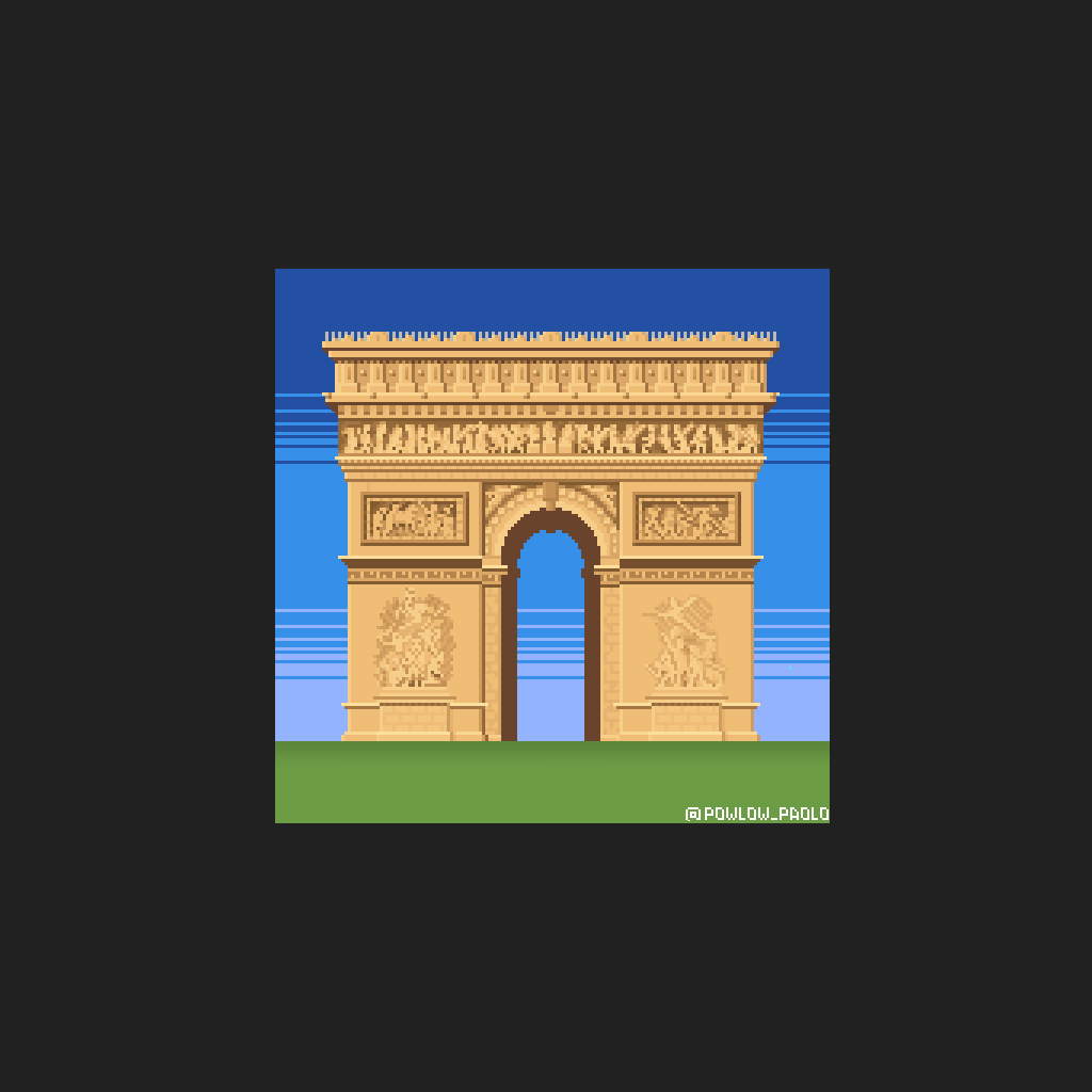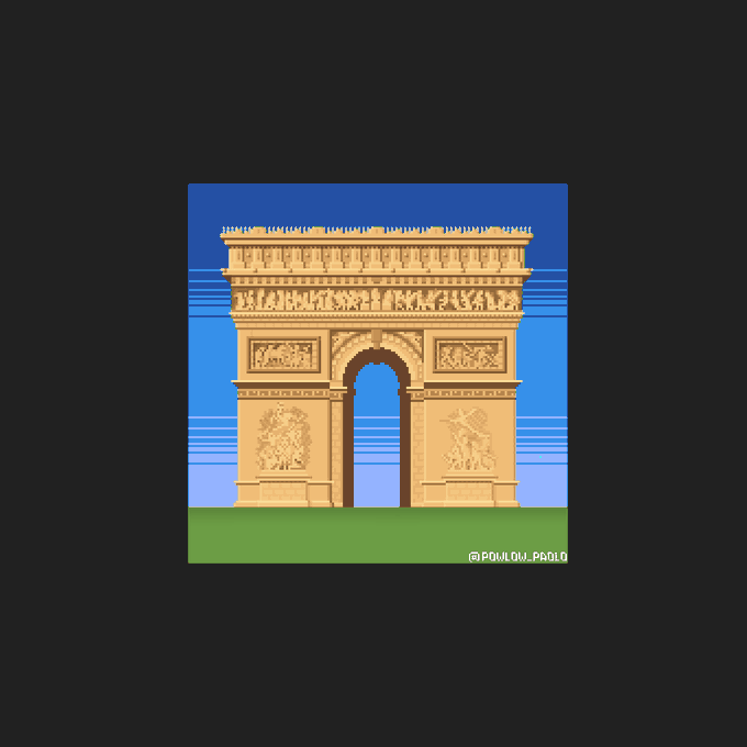 L'arc de Triomphe - powlow_paolo (2022 release). I updated the original version I did in 2018. Revisited thanks to the folks on Reddit using it for r/place 2022. #pixelart #pixel #pixelartist #arcdetriomphe #france #vivalafrance #monuments #architecture #art #nostalgia #nes