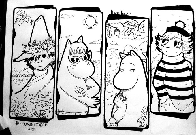 Spring, summer, autumn and winter... A perfect harmony💞🌸☀️🍁❄️💞 ... But... What's up Moomin? 😢 #Moominktober2021 Day #9- Seasons #Moominvalley #moomins #ムーミン #moominfanart #tintubre #drawtober2021
