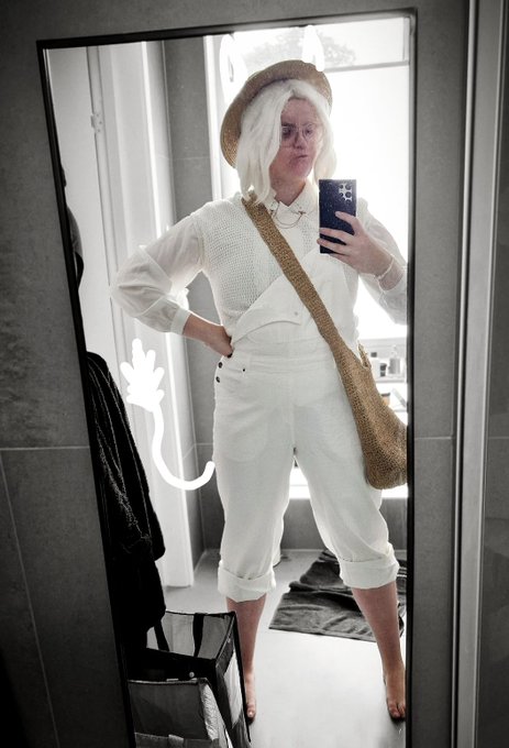 "But Sniff snores so horribly,’ said Moomintroll. ‘Couldn’t I sleep with Snufkin instead?"🤍 This is what happens when an idea percolates in my head, ever since seeing @s_imaginarium 's handsome Snufkin meets the perfect shopping trip. #moomintroll #moomin #moomincosplay