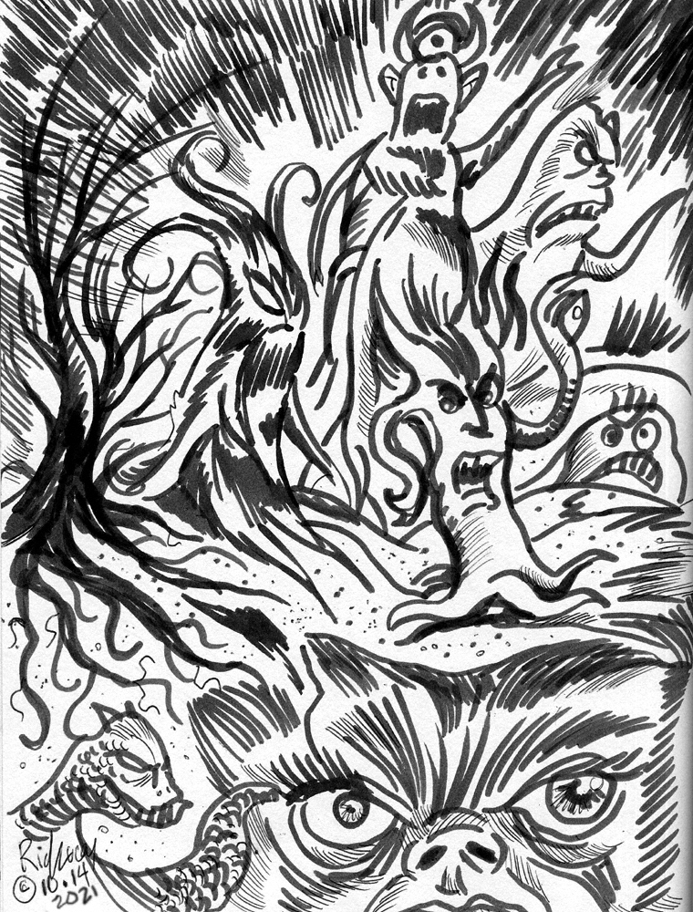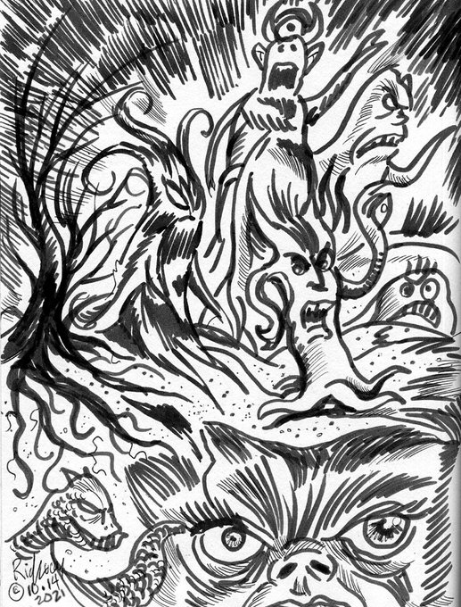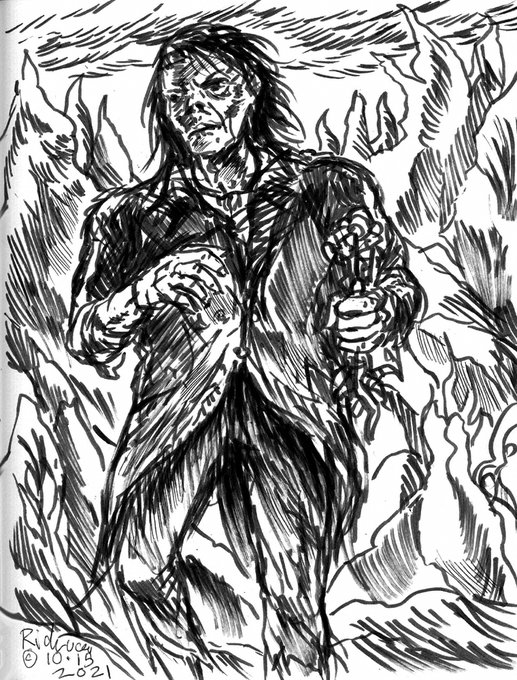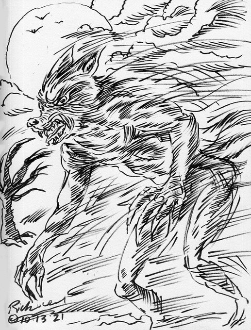 Day 12 of #Rinktober, #Drawlloween, #drawtober, etc. Then there was #WereWolfWednesday ! Chills and welcome to #Halloween time! #sketchbook #drawing #horror #monster #moonbeast #nightmare #drawrick #werewolf #inksketch