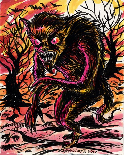 Some #WerewolfWednesday imagery in a multimedia way! Chills! #werewolf #monster #horror #HorrorArt #digitalart #colorinkdrawing #inksketch #traditionalpainting #monsterhorror #moonbeast #drawrick #create #HorrorFam