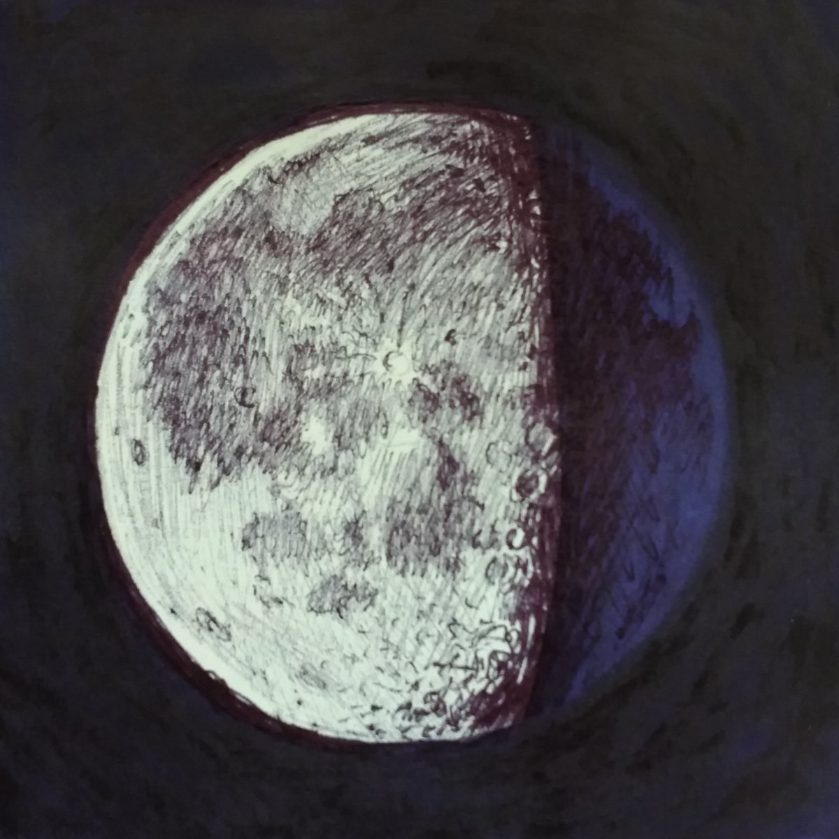 My 27th #inktober drawing is of the Moon and how it should look tonight. Drawn with Biro pen and a marker on a Post-it note. #inktober2021 #astronomy #moonphase