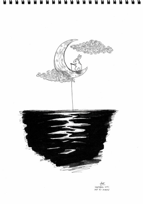 hey moon, please forget to fall down hey moon, don't you go down [inktober day 18: moon] {#inktober2021 #inktober #inktober2021day18 #inkdrawing #art #illustration #MoonRabbit #イラスト}