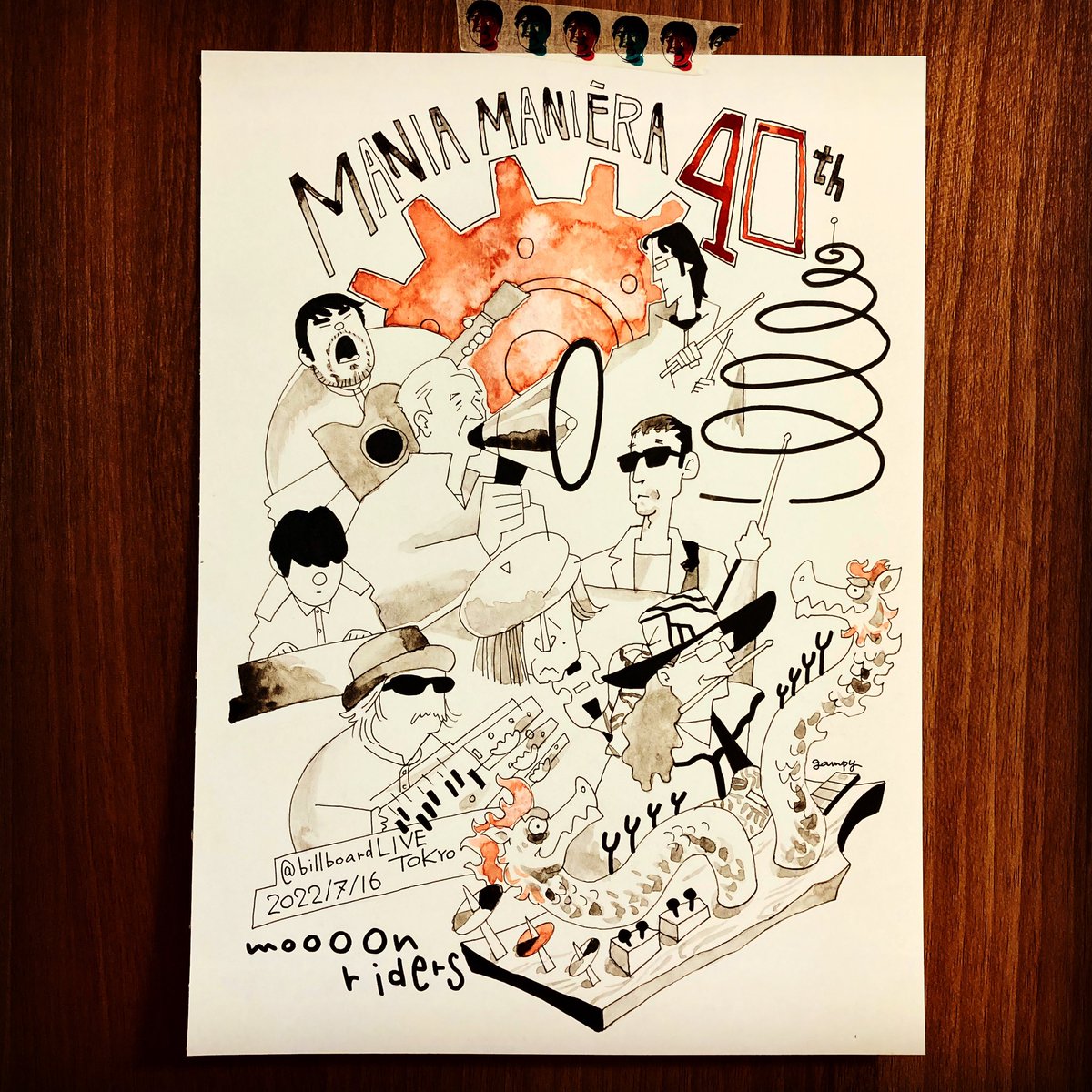 久々に描いた!楽しかった。コロ助のために随分ステージのお姿を見てないので描けないかと最初焦りましたが、描いてるうちに細部を思い出していきました。やっぱりライブで観たいお会いしたい! #白井良明 さんfanart #moonriders #愛丼 #eyedontnose #forinstance #アナログイラスト