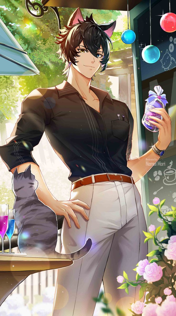 Commission 💕 Usagi Kira and Mori 🐰🐱 I rarely draw couple illustration, thats why it took longer than usual to finish this. But I'm really happy on how it turned out, they look so cute together~ 😭💖 #kimorii #usagiart #mori_arty
