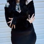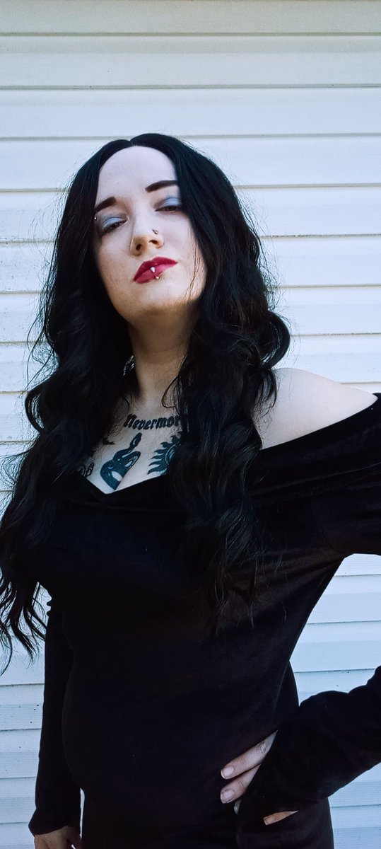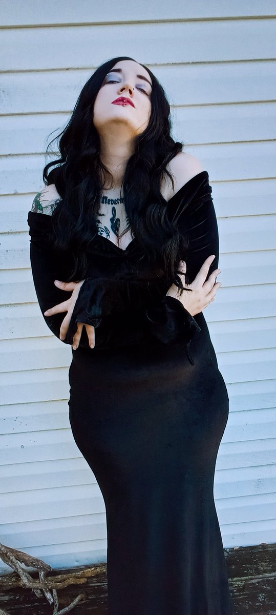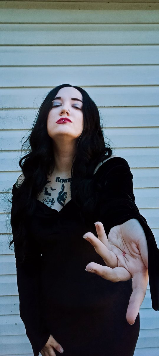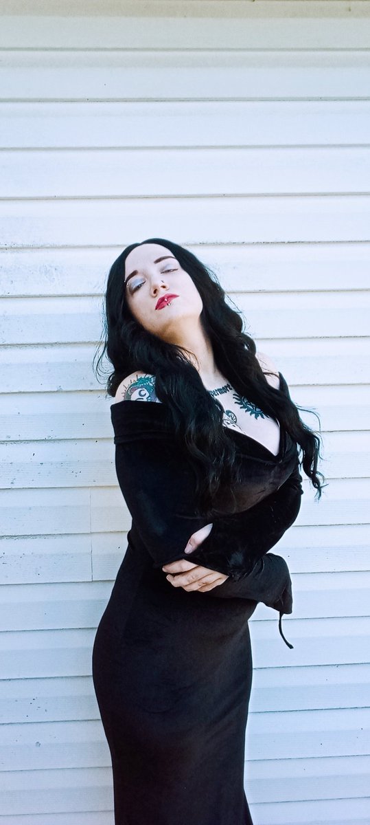 "I'm just like any modern woman trying to have it all. Loving husband, a family. It's just. I wish I had more time to seek out the dark forces and join their hellish crusade." 🥀 #morticaaddams #theaddamsfamily #cosplay