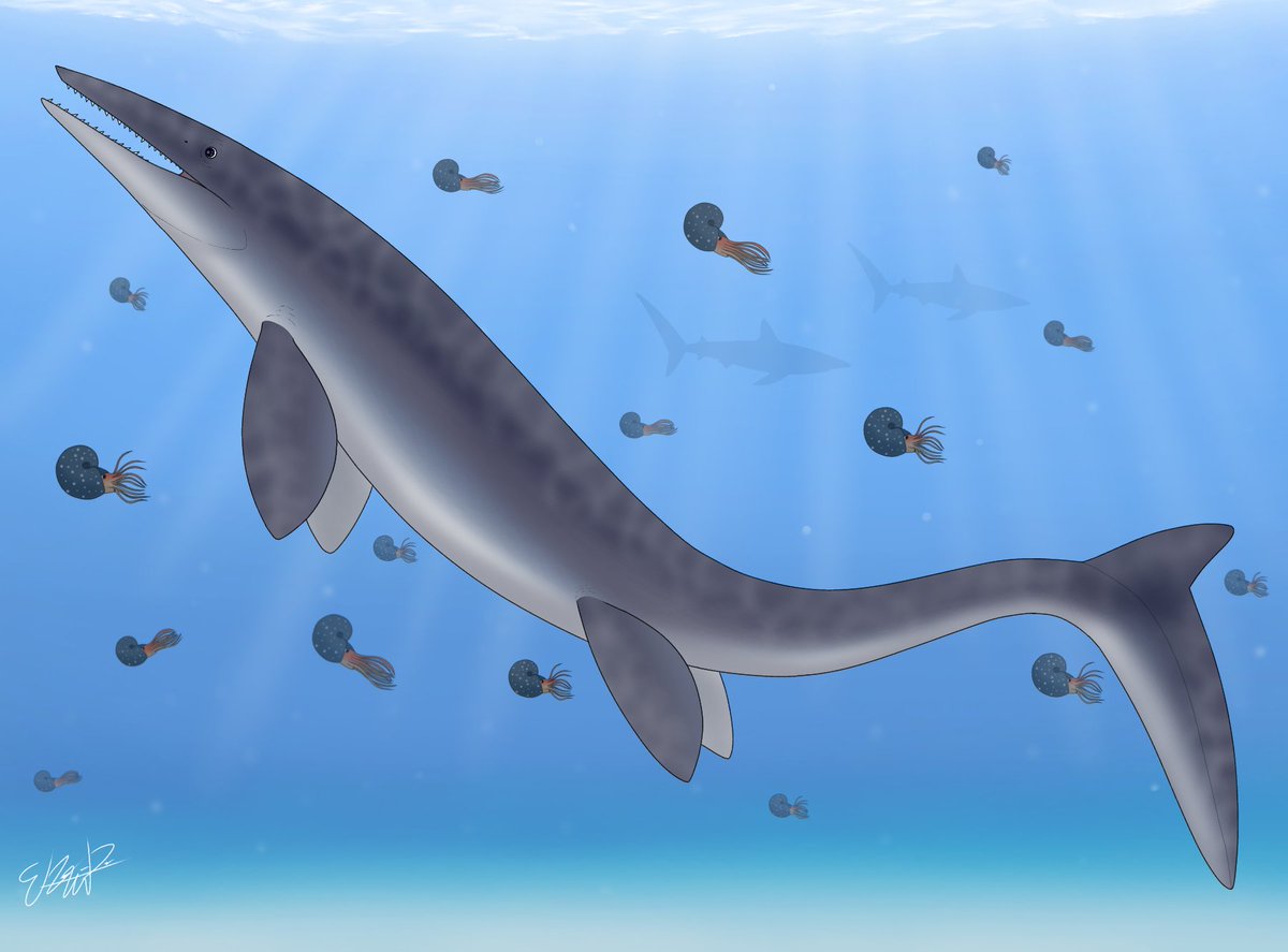 Drawing on a phone is limiting, but doable for me. Halisaurus arambourgi paleoart Criticisms welcomed, although with this one I focused more on learning perspective and lighting than accuracy for the most part, but still. #paleoart #mosasaur #paleontology