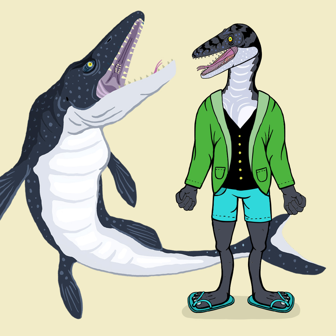 モササウルス #Mosasaurus 中生代白亜紀後期に生息していた肉食の海棲爬虫類。 白亜紀の海を支配した捕食者。 頭骨はワニを思わせる形で、後方に湾曲した多数の歯を持つ。 #dinosaur #nft #nftcollector #nftart