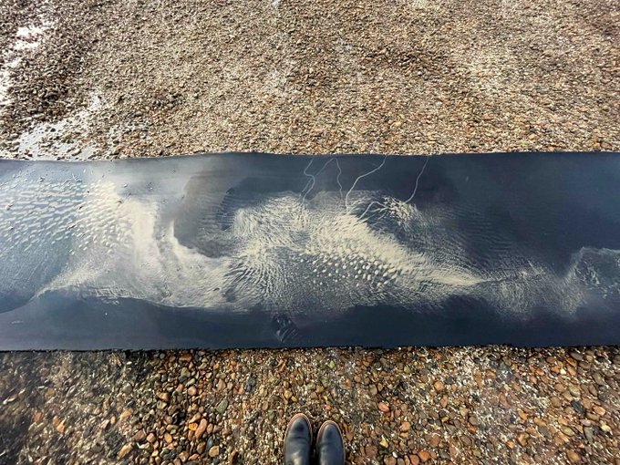 Obsessed with this 😍!! Found drawing by Mother Nature, sand and sea water patterns on a long piece of rubber from the beach #founddrawing #mothernature #sanddrawing #beachtextures #whitstable #texturehuntergatherer @The_Big_Draw @Drawinglives