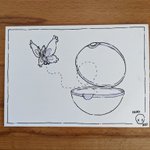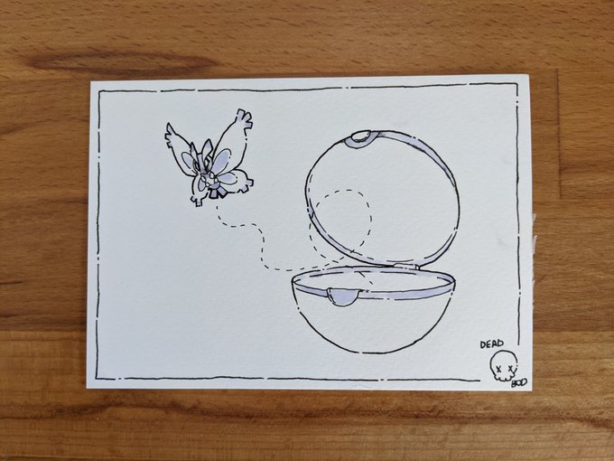 #inktober2022 day 14: empty! i messed up on this one and did the lines before the colour so there's very minimal ink on this one :') - #inktober #inktoberday14 #pokemon #pokeball #mothim