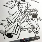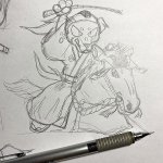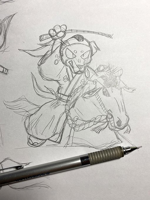#MotoGP クラスに #チームスズキエクスター より参戦🔥した #津田拓也 選手のSPヘルメットのキャラクター裏話🤫 ラフ〜線画まで。 額の馬具にはGSX-RRのゼッケンとウイングレットを装飾にデザイン。 いつもより凛々しい将軍様を描きましたっ🙇♂️ #スズキ #suzuki #TakuyaTsuda #GSXRR #MotoGP_jp