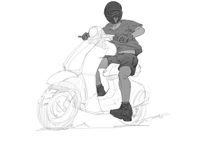 ライダーを描く 自作3Dのスクーターと、クリスタ人形をレイアウトして、描いてゆく方法。 目線、大事ですねー #CLIPSTUDIO #illustration #motorcycle twitter.com/i/web/status/1…