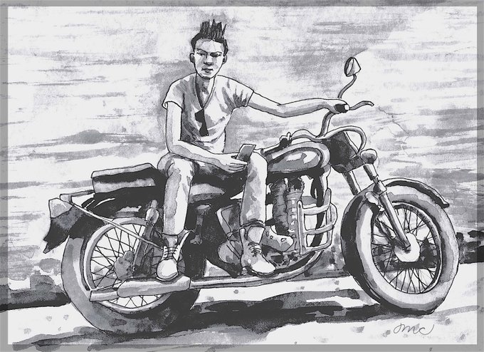 This guy loves his speed. #ink, #drawing, #illustration, #motorcycle, #man, #blackandwhiteillustration, #art
