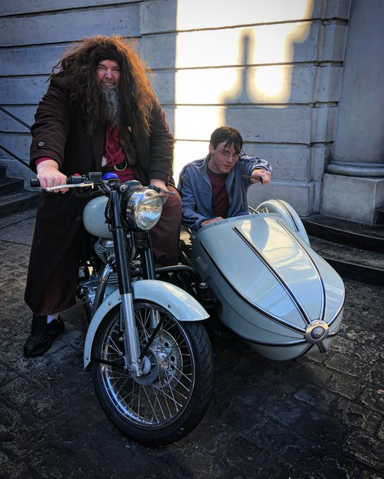 Head for the Burrow! We’ll rendezvous there!⚡️🏍️💨 #harrypotter #hagrid #cosplay #motorcycle #deathlyhallows #hogwartslegacy #harrypottercosplay #lookalike #mugglenet #jkrowling @jk_rowling