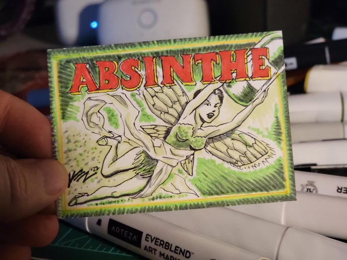 #inktober2022 day 24, Prompt word: "FAIRY." I could have gone with Tinkerbell but went with Kylie Minogue instead. #inktoberday24 #originalart #moulinrouge #absinthe #KylieMinogue