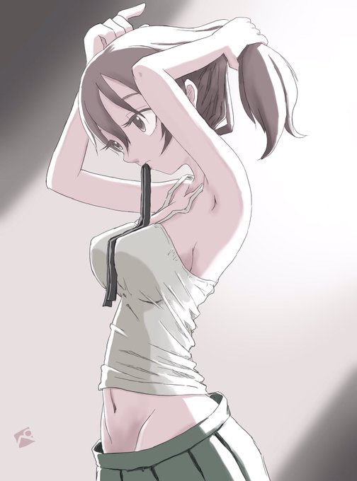 ポニテを結う仕草は実によろしい。 #mow版深夜のお絵描き60分一本勝負 #mow版深夜のお絵描き60分一本勝負_20211102 お題「小山 柚子」 #小山柚子生誕祭 #小山柚子生誕祭2021