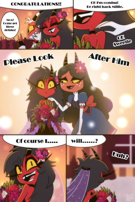 ✨Another Special Dance✨ I was inspired by @CaramelCat85 from her latest comic to make this one :D Dedicating this piece to my grandma… I miss you so much… #HelluvaBoss #HelluvaBossFanart #HelluvaBossMoxxie #HelluvaBossMillie #Moxxiemom #MoxxieXMillie #Moxxie #gothiicprince
