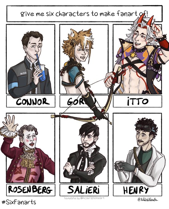 J’ai terminé ! Merci aux gens qui m’ont proposé des personnages, j’ai choisi ceux que je connaissais #SixFanarts #GenshinImapct #dbh #visiteurdufutur #mozartloperarock