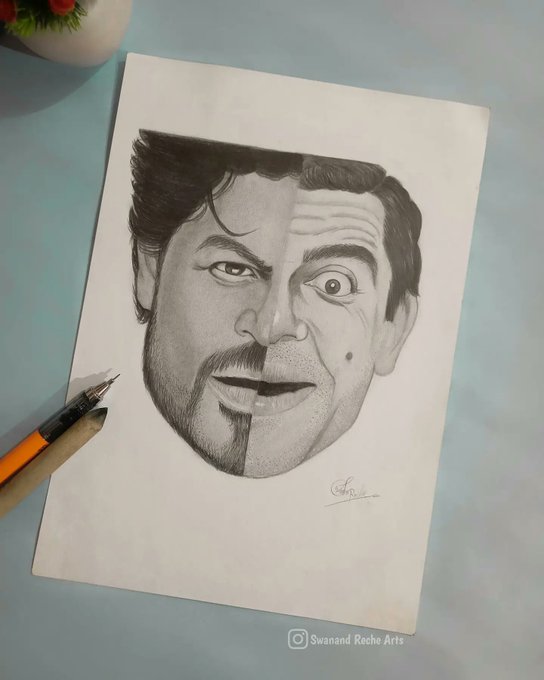 Any comments for it . @iamsrk @rowanatkinsonfp @SRKUniverse #SRK #mrbean #drawing #art #artistsontwitter #artvsartist2021