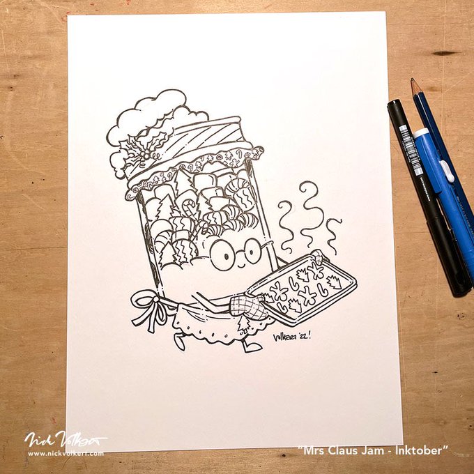 Day 7 of Inktober! My “Sweet Jam” series has a new wholesome entry: Mrs Claus Jam, and she’s baking up some warm goodies!. #inktober #inktober22 #inktober2022 #penandink #october #illustration #illustrator #santa #xmas #xmas22 #xmas2022 #christmas22 #christmas2022 #mrsclaus