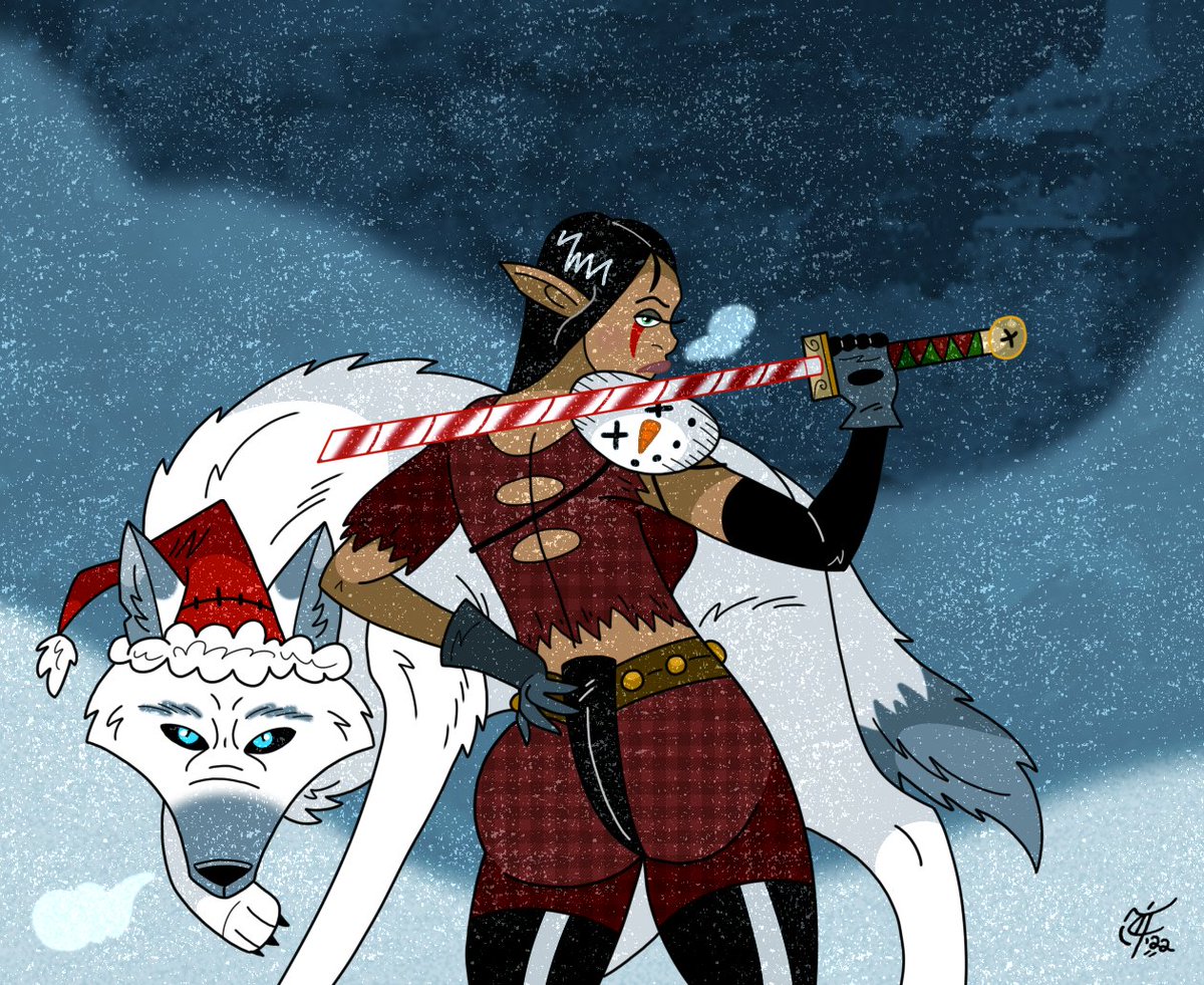 "Mrs. Claus" - I always wanted to draw something Christmasy inspired by "Heavy Metal" 🤶🧝♀️🗡🐺❄️🤓 #HappyDrawlidays2022 #MrsClaus #christmasinspired #candycane #heavymetalmagazine #elvenlady #swordswoman #direwolf #whitewolf #epicart #fantasyart #characterdesign