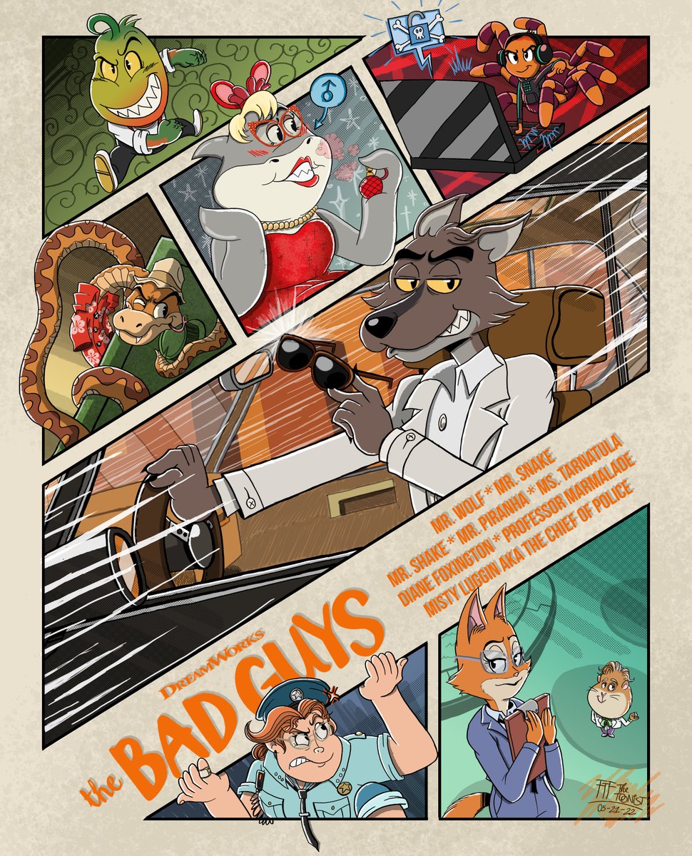[NEW] Two Fan "Comic-vintage" posters of the recent DreamWorks film "The Bad Guys", after I enjoy watching the spiritual kind since Lupin III that I love it. #TheBadGuys #TheBadGuysMovie #DreamWorks #MrWolf #MrSnake #MrPiranha #MrShake #MsTarantula #FanPoster #Vintage #FanArt