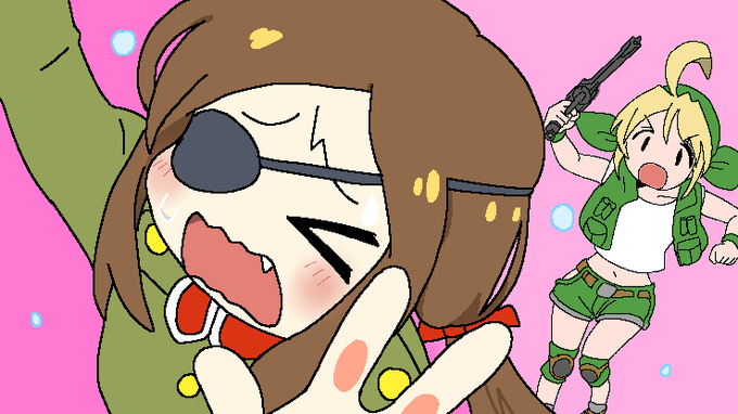 デジタル落書き。 キャル=サンを捕まえたことを報告するディオン=サンと背後から襲おうとするキャル=サン。 どこかで見たことある?きっと気のせい! 影とか背景とか途中でめんどくさくなったので落書きな! #MetalSlug #メタルスラッグ #metalslugattack #メタルスラッグアタック #MSA #メタスラ