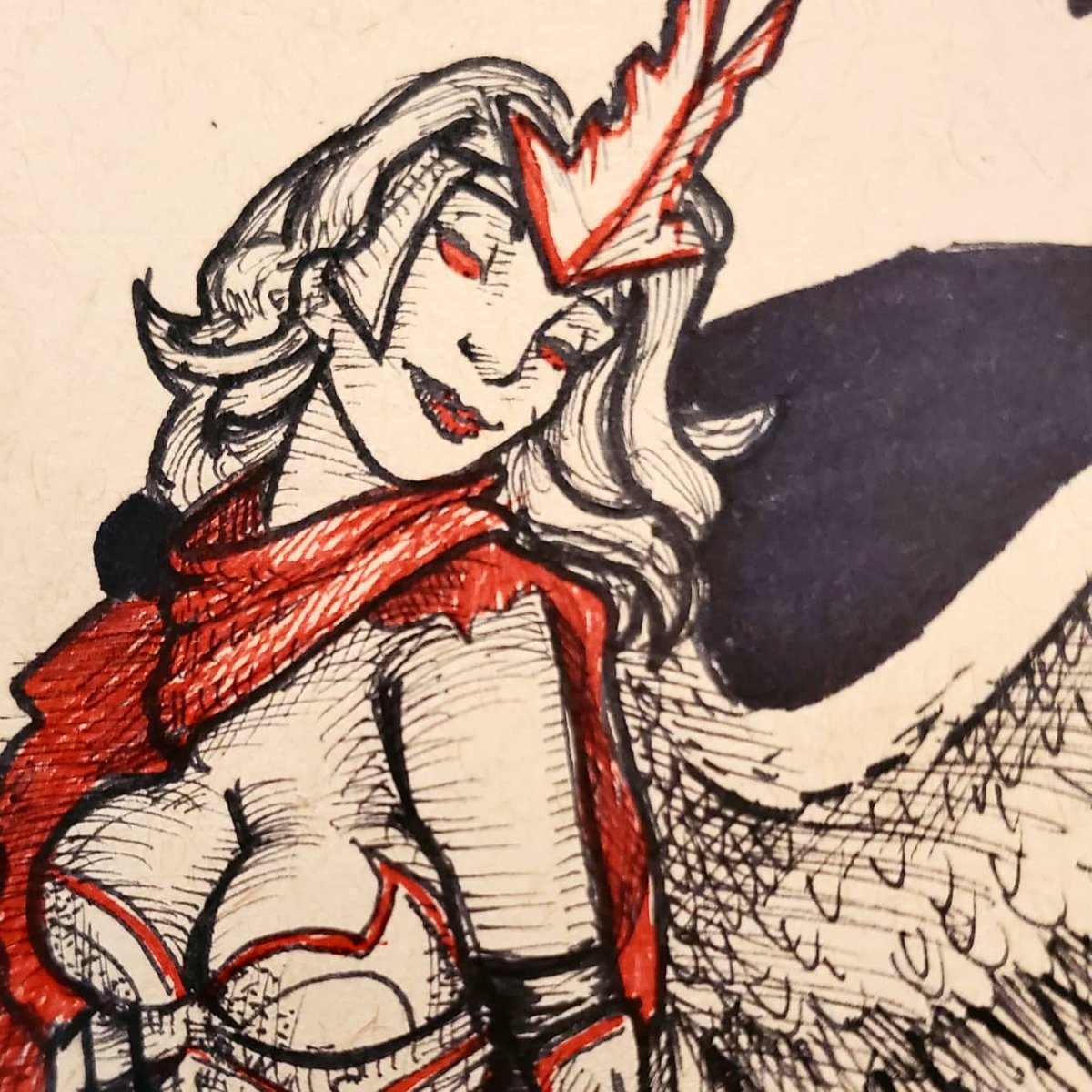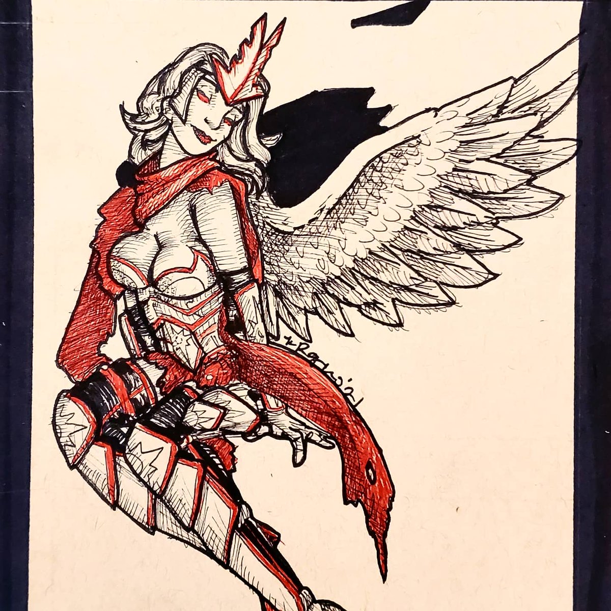Today's #inktober2021 and #magictober is the 1st of my #mtgpinup set featuring #mtgcommander Feather the redeemed. #altartcards #customcards #pinupgirl #angel