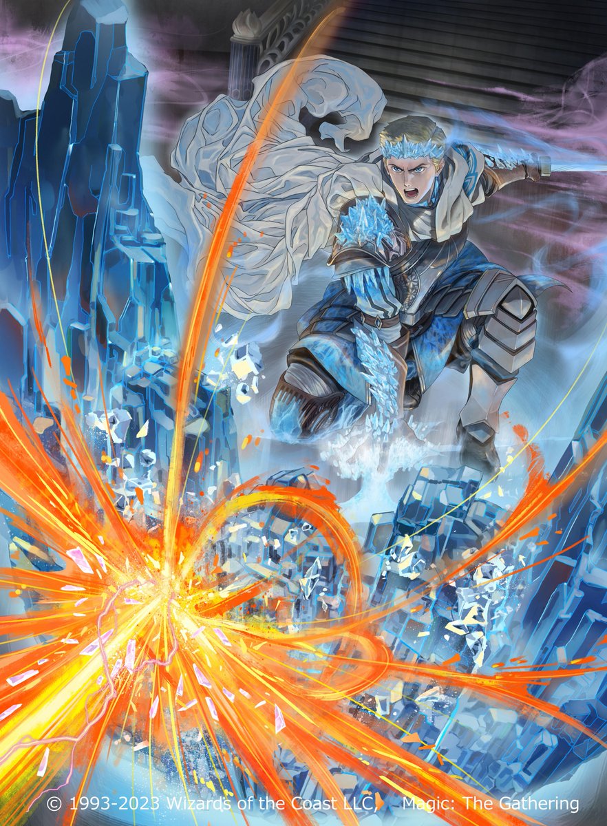 マジック:ザ・ギャザリング『エルドレインの森』アニメ・ボーダーレス版プロモカード 《紅蓮破/Pyroblast》と《氷封/Ice Out》のイラストを描かせて頂きました!🔥🧊 #mtgjp #MTGEldraine