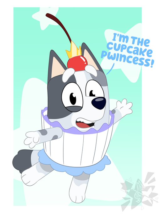 Here is my contribution for this Confectionary Threenager. I feel like her mum gave her this name. #Bluey #blueyfanart #MuffinHeeler twitter.com/zyh1111113/sta…