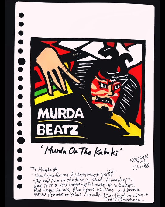 'Murda On The Kabuki🇯🇵' @murdabeatz @shochiku_corp #murdabeatz #kabuki #musicproducer #hiphop #trapmusic #힙합 #嘻哈 #culture #ヒップホップ #fanart #sketch #red #drawing #お絵描き #ペン画 #inktober #inkdrawing #popart #現代アート #modernart #nft #nftcommunity