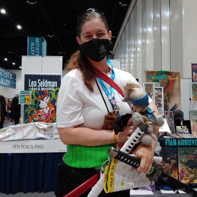 Audrey and I are going on an adventure! She also says "Two for flinching!" #murphysplushtrips #murphysplush #amigurumi #yarncraft #cosplay #Atlantisthelostempire #SDCC2022