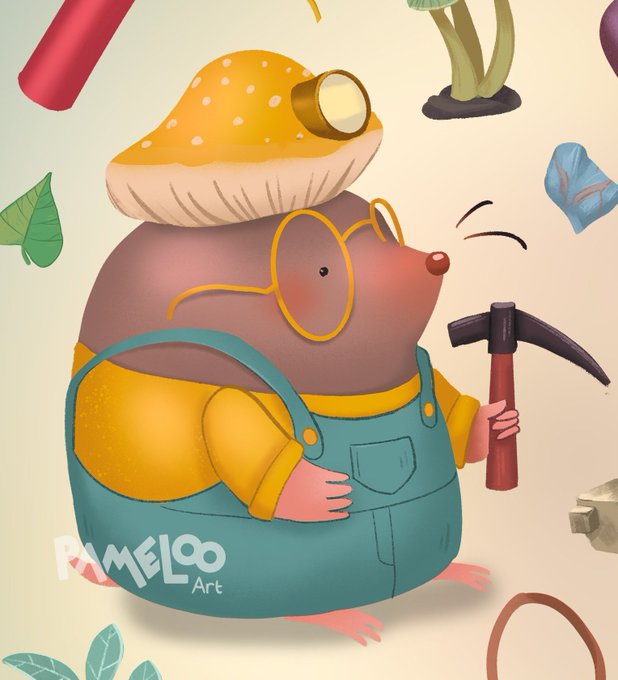I made a handfull of critters, first up: mole miner 🥰 I'm being really bad at maintaining social media, I promise I have content though ☠️ #Procreate #artistsontwitter #art #drawing #illustrationart #kidlitart #mushroomhead #Mushroom