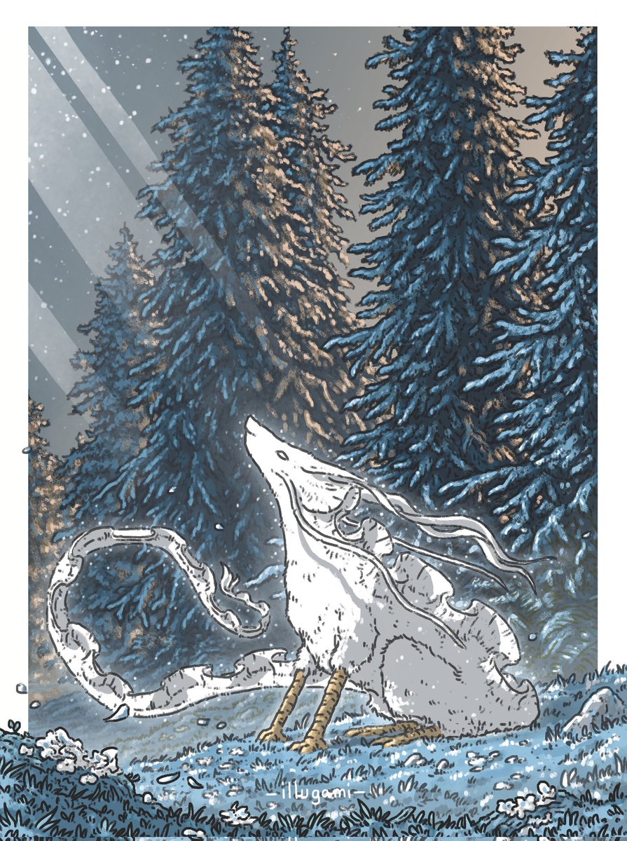[Champidragon du Lichen] Très répandu dans les régions naturelles et sauvages, ce champidragon est un atout précieux pour indiquer le Nord au voyageur perdu... BONNE RENTRÉE A TOUS ! 💙 #smaugust2022 #mushroomsmaugust #dragon #fantasy #artist