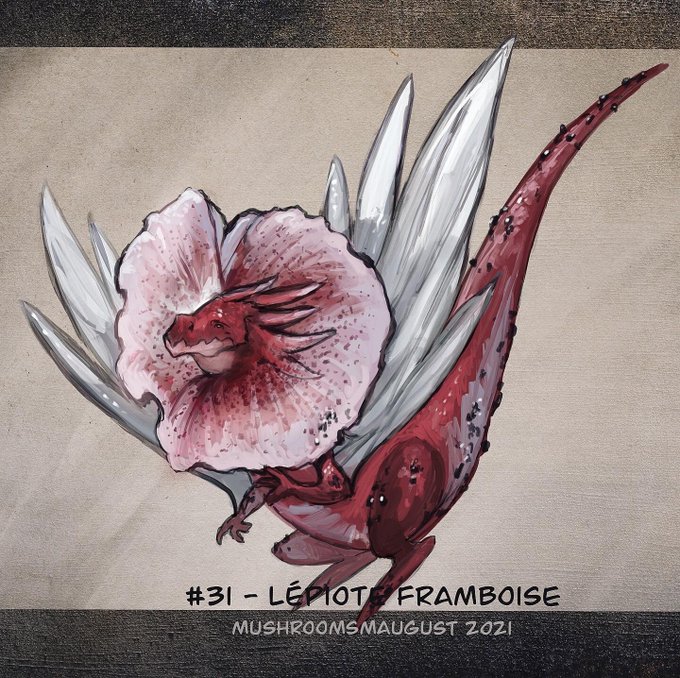 Jour 31 : Lépiote Framboise, c'est FINI. FINI ! #mushroomsmaugust #mushroomsmaugust2021 #smaugust #Smaugust2021