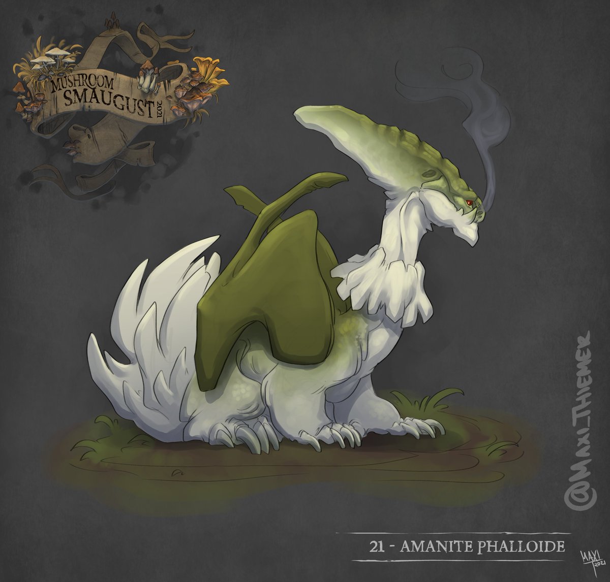 #mushroomsmaugust 21 - Amanite Phalloide Day 32 of August '21. Still having fun with those dragon designs :D Still some to draw and still boosted :> #dracofungus #smaugust #smaugust2021