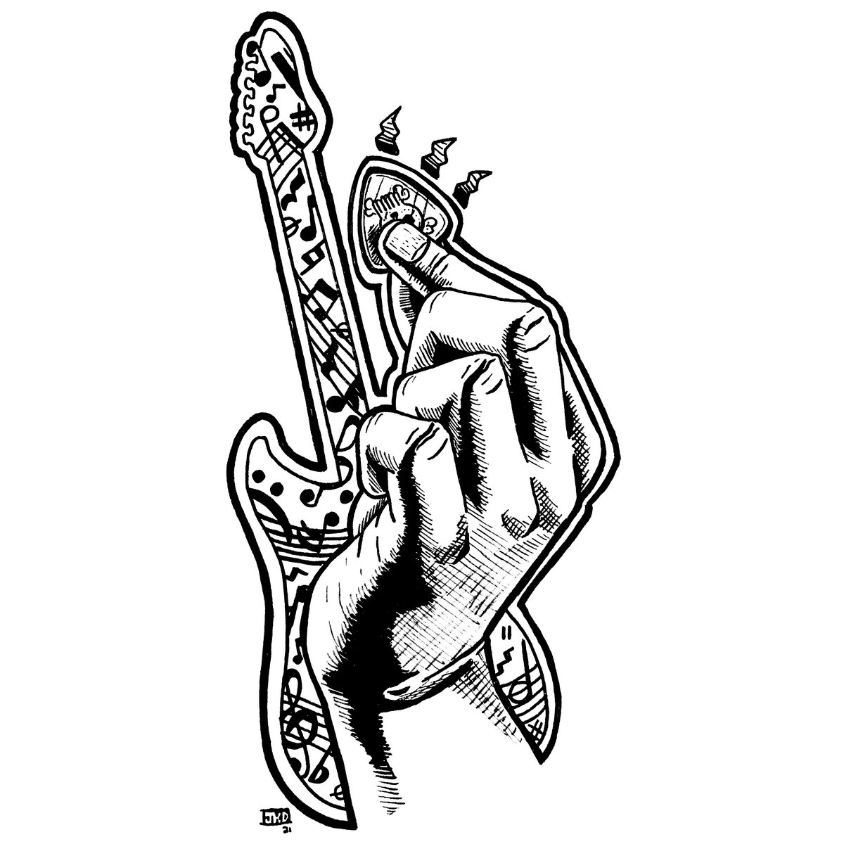 Catching up from yesterday's #inktober. "Pick" was the prompt of the day. #inktober @inktober @inktober2021 #inkedillustration #Dailyart #artistsoninstagram #inkeddrawing #guitarpick #crosshatching #musicnotes #penandink #blackandwhite #inktoberprompt2021