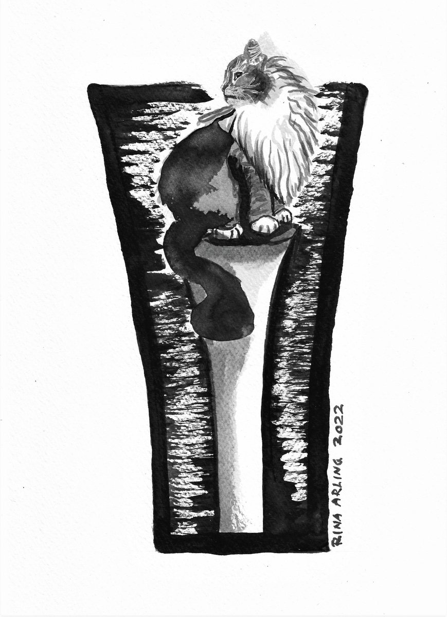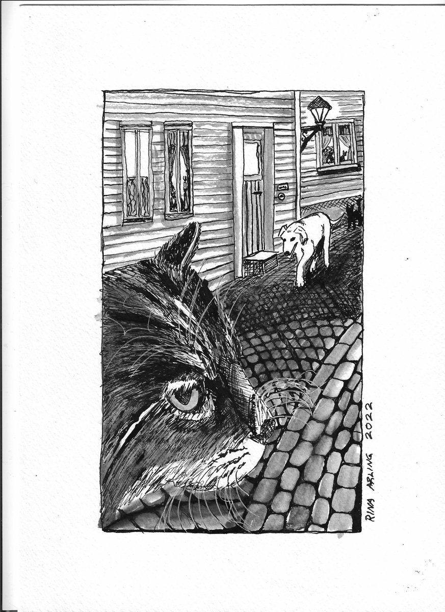 #Inktober2022 , Day18. "Scrape". rinaarling.com facebook.com/Rina Arling Art (story in FB) instagram.com/rinaarlingart/ twitter.com/RinaArlingArt #inktober #Scrape #drawing #painting #ink #rinaarling #art #artist #cat #maleri #piirros #maalaus #muste #blekk #tegne #kissa