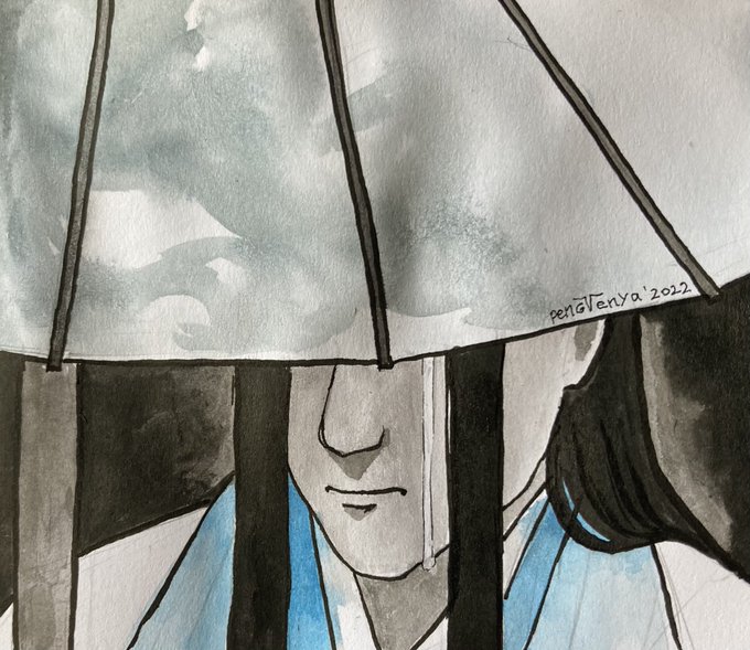 Why not start painting #mxtxtober two weeks late? Day 1: Umbrella/Fan #mxtxtober22 #inktober2022 #inktober #mdzs #LanWangji #魔道祖师
