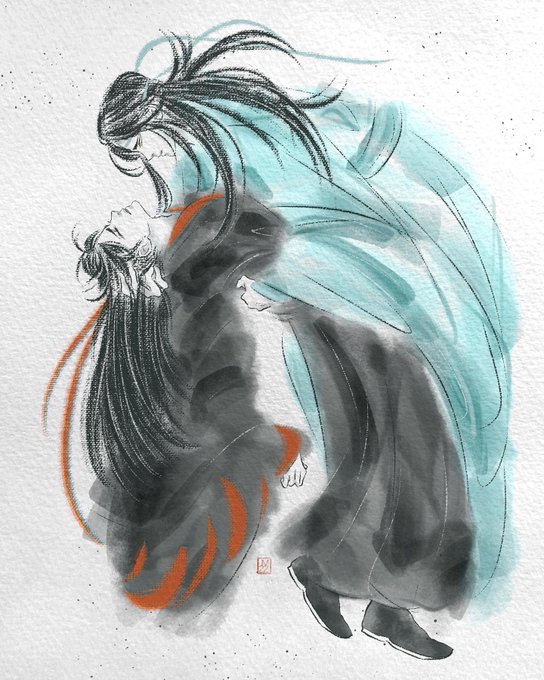 #inktober day 7 - Trip. I tried to imitate traditional chinese painting here, so it also fits #mxtxtober prompt for day 9. #WangXian #MoDaoZuShi #魔道祖师 #LanWangji #WeiWuxian #mdzs #mxtxtober22 #inktober2022