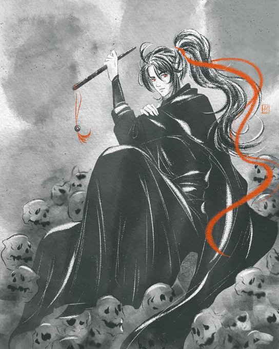 ✨MXTXTOBER DAY 16: DEMONIC✨ This person was shrouded in gloom and biting cold. He was handsome but ghastly pale and his smile could only be described as sinister. (I’m really happy w/this piece!) #mxtxtober22 #mdzs