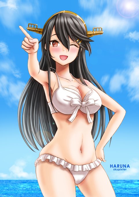 #年の瀬に渾身のイラスト晒すのでフォローしてください pixiv先生にご推薦いただきました、こちらです! スカイピクスターの、2021年もっとも見られた作品は「水着榛名」です! | pixiv.net/artworks/92467… #myBESTpixiv2021
