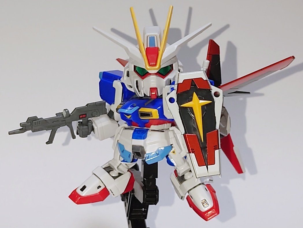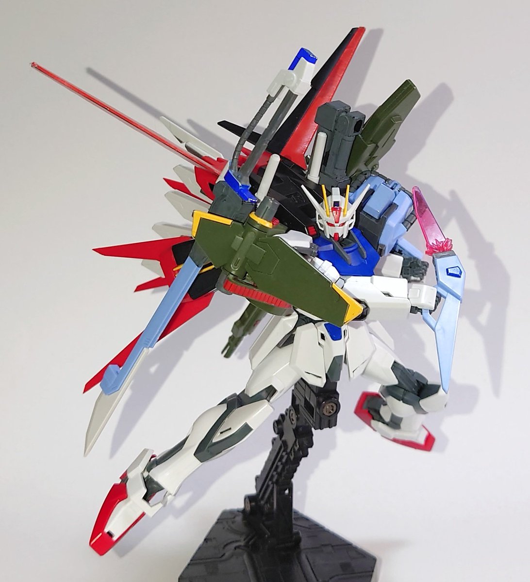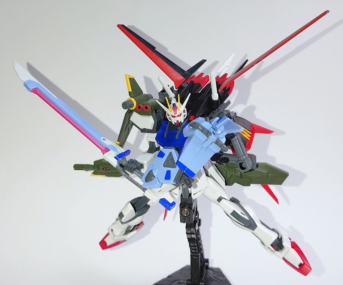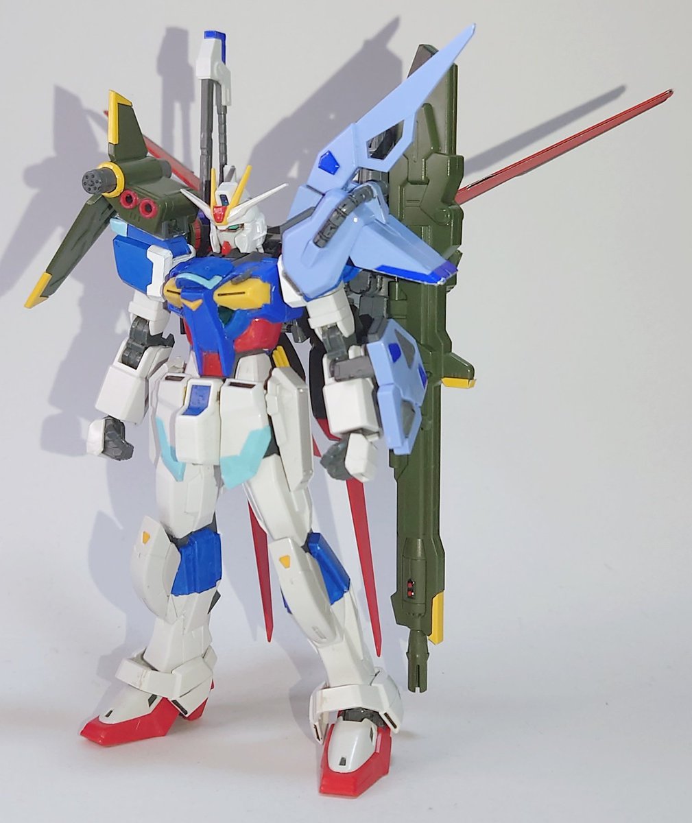 #my_plamo まだ未完成、機体名も未定のインパルスっぽいオリジナル機体 コレクションシリーズ、HGSEED、HGCEのシルエット、HG規格のストライカーパックが使用可能(後者は肩と胴体背中部分を付け替える必要あり) #ガンプラ #ガンプラ好きと繋がりたい #ガンプラの画像貼るとRTされると聞いて