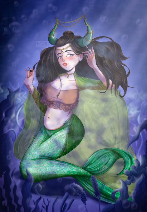 Día 9 del #mermay2022 Zodiac ♉️ Como cada año por mi cumpleaños🎂, me hago a mi misma siendo una sirena✨️ 27 años de petardeo ✨️ #digitalart #MyBirthday #illustration #mermaychallenge #mermay